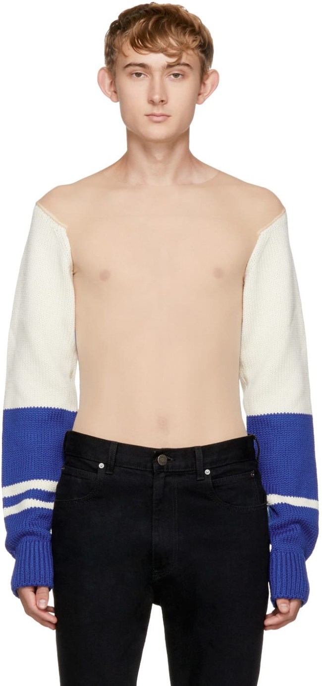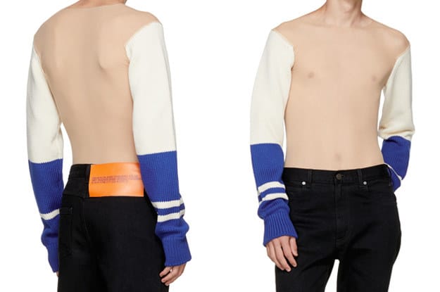 The sweater, which is made by luxury retailer Ssense, is made up of sheer on the torso and wool on the sleeves. And it’s price tag: More than your rent for a couple months: $2,165.