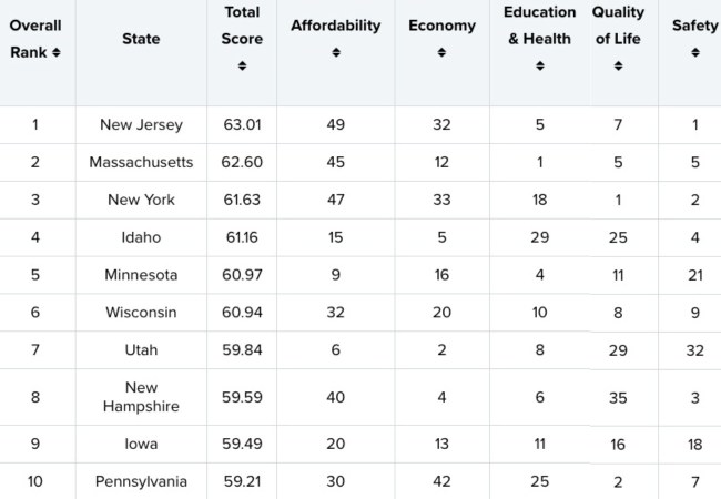 Rounding out the Top 5 are Massachusetts, New York, Idaho, and Minnesota. South Carolina, Mississippi, Louisiana, Alaska, and New Mexico represent the bottom five states in the rankings, with New Mexico coming in last. You can check out WalletHub‘s full rankings here.