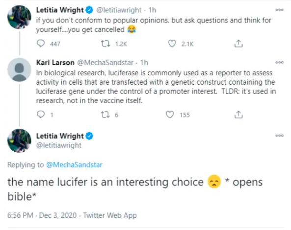 Wright, who deleted her Twitter account in December following backlash to her promotion of anti-vax conspiracies — “The name lucifer is an interesting choice,” Wright tweeted at one point — is currently in London recovering from injuries she sustained on the set of Black Panther: Wakanda Forever. However, if and when filming resumes in Atlanta, Wright will not be able to enter the United States due to vaccine mandates.