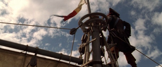 All of these aspects are then wonderfully tied into a bow in the closing moments as Jack arrives at the port just as his quickly-sinking ship fully submerges underwater, calmly stepping onto the dock as his ship disappears behind him.
