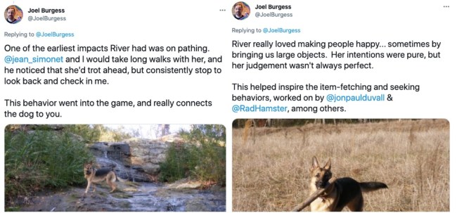 “I said goodbye today to River, who most of you know as Fallout 4’s Dogmeat. Heartbroken doesn’t cover it, but I won’t eulogize her here. For Twitter, I thought it’d be appropriate to look back at her impact on that game,” Burgess began.