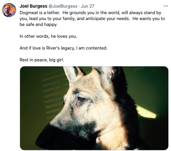 In an incredibly heartfelt Twitter thread, Joel Burgess — the director of Canadian gaming studio Capy Games — paid tribute to River, who unfortunately passed away over the weekend.