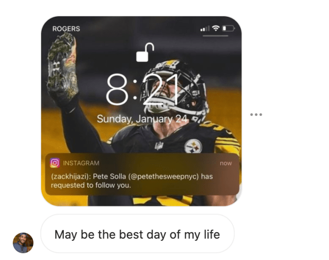 This breakdown of the star-fan wall was more than I could handle. Not only was Pete stealing the spotlight from me, he was threatening to upend the delicate influencer-influencee balance—a balance I strive to protect at all costs. Don’t. Follow. Back. Once you open that channel, there is no telling what might happen. One day, you’re asking a fan from Pittsburgh for the best pizza place in town. The next, he’s catfishing you as a buxom blonde from a separate account, he’s holding terabytes of your penile photos for ransom, and he expects $4,000 in Amazon gift cards by Friday.**