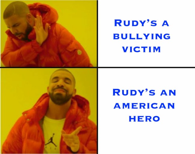 This was a misguided defense mechanism used to re-enforce my longstanding belief of Rudy as an American icon, because sometimes preserving the lie is more important to the betterment of society than uncovering the truth.