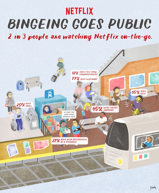 Netflix released a graphic containing some of the other information gleaned from the 67% of people who have copped to watching the platform in public.