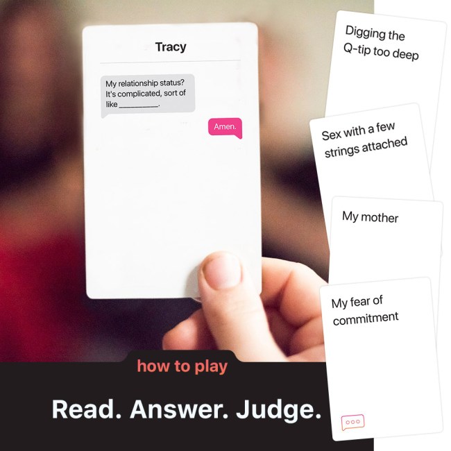 Looking for a new card game to replace Apples to Apples or Cards Against Humanity? Love exploring your dirty little mind and not getting in trouble for it? We’ve got a new game called Dot Dot Dot – Dating App Edition that’s perfect for you.