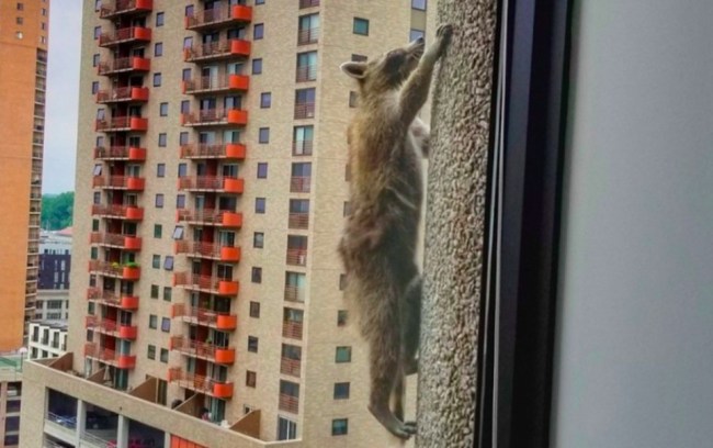 The #mprraccoon is doing a little grooming now that he's a social media star. You know, on a 23rd floor window ledge. @MPRnews pic.twitter.com/pGcwh7OJ6L