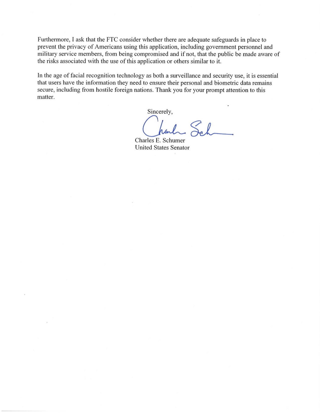 In a letter posted on Twitter, Mr Schumer called it “deeply troubling” that personal data of US citizens could go to a “hostile foreign power”.