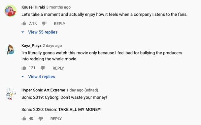 In fact, if you scroll through the trailer’s comment section on YouTube, most commenters seem to indicate that they will be seeing the movie solely due to the studio’s willingness to listen to fans and change course.