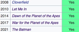Originally known for directing the then-somewhat-revolutionary “horror” film Cloverfield, Reeves went on to make one the 2010’s best action franchises with his latter two entries into the Planet of the Apes franchise.