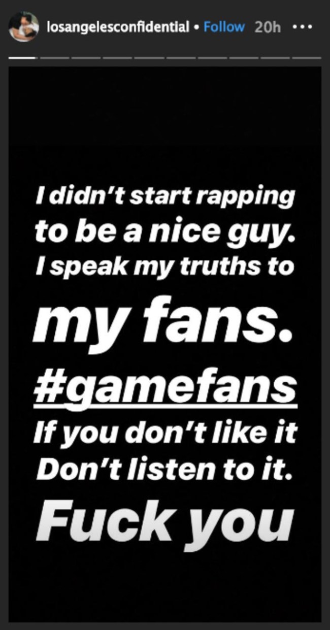 In an Instagram story, the double platinum artist expressed that he has no interest in being the nice guy over speaking his truth. Even if that means burning bridges with a rap icon and making claims about hooking up with a possibly-too-young Kylie Jenner.
