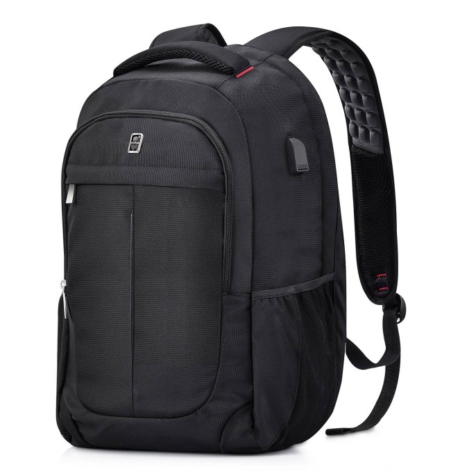 Another laptop backpack, this one has a killer design that keeps it pretty much theft-proof. A hidden zipper makes it almost impossible for a thief to even tell where to open this from, and if he does somehow figure it out, he still won’t be able to reach it. That’s because it isn’t located on the front of the bag. He’d have to physically take the bag off you. It’s also shock-proof, and designed to open and scan easy by TSA agents for added comfort and security.