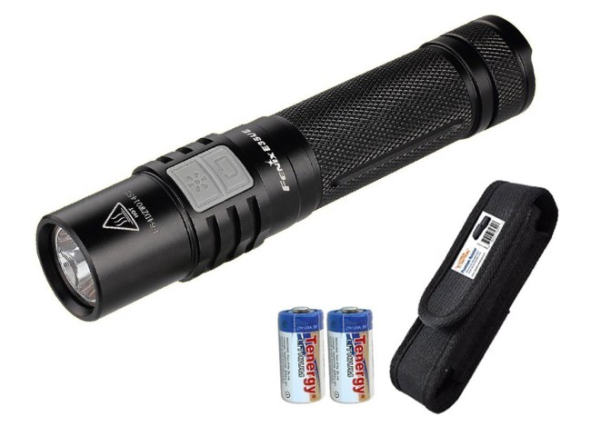Two lithium ion batteries ensure that this flashlight will last longer than its AA or AAA powered cousins, and with a max of 350 lumens it should shine bright for as long as you need it to. It’s also waterproof up to one meter for up to a half hour, and given that it is by far the most heavily reviewed every-day carry flashlight on Amazon, you need not have any worries about its quality.