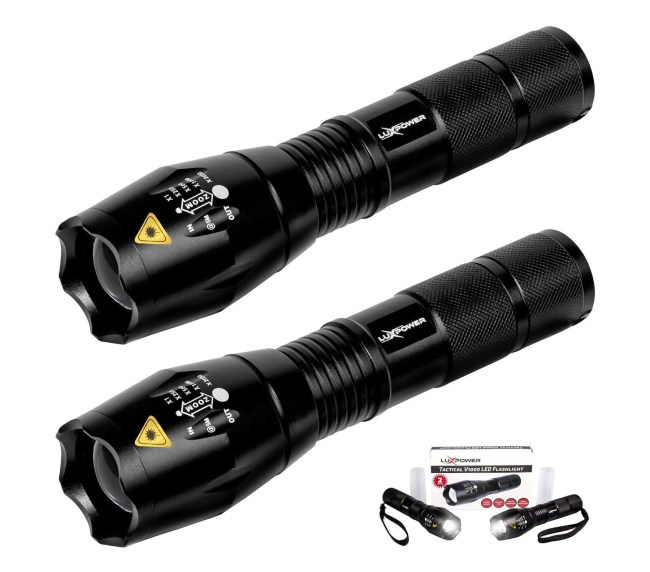 This flashlight is a badass. With a crazy 900 lumen max output that shines up to 1,000 feet, you’ll be able to see crystal clear across the length of three football fields. It’s also water-resistant and designed for use in heavy rain or snow, plus it’s USB chargeable, so… yeah, this flashlight kills it.