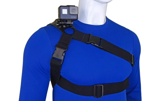 Go hands-free with this action cam harness, which straps right around the chest and lets your snowboarder film his whole day without worry. A 360-degree ball joint allows the camera to rotate, well, 360-degrees and the shock-absorbent base plate is designed to both keep your camera safe and keep it from digging into your shoulder. Just strap it on and go.