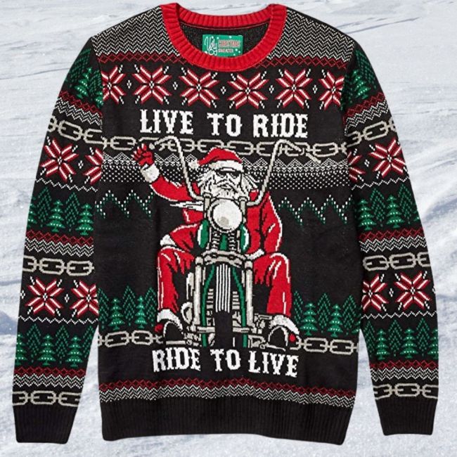 Even bikers need ugly Christmas sweaters. Did you know Santa sometimes delivers his gifts via Harley?