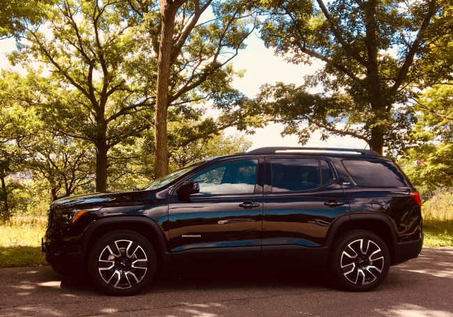Not wanting to alert the fuzz, I try to keep it at a steady 120 km/h, but the flow of traffic is going much faster, and the Acadia can definitely handle the speed while maintaining a smooth ride. Besides, this all black edition, with its 20-inch aluminum wheels with gloss black accents, black grille, black headlamp and taillamp details, black mirror caps and roof rails, and black exterior accents, is so sleek, stylish, and low profile, that I’m no target for radar enforcement.