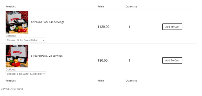 You get ample sausage for a proper summer kickback. $80 of sausage is enough for 24 servings. A 12 pound pack doubles that, so you can sausage it up with the whole block.