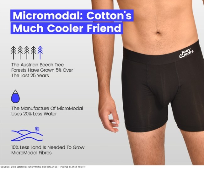 The underwear is also made from mircoromodal Beech fabric, which keeps your swampy regions crisp and cool, like listening to a Fleetwood Mac song in a coastal Pacific breeze.
