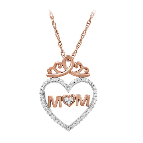 Diamond Mom Heart Pendant in 10K Rose Gold