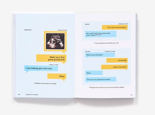 Your Sh*tty Family is a hysterical new collection of text exchanges from moms, dads, grandparents, and siblings that prove, well, relatives are shitty to one another most of the time.