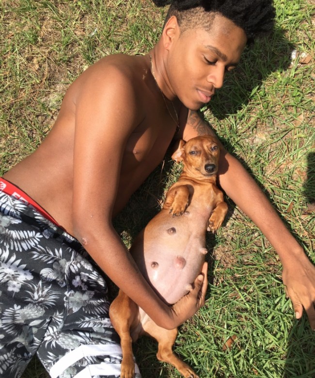 In any event, a 20-year-old from Florida named Daquan Collins has offered a different, more humorous spin on those maternity photos that saturate our feeds, featuring his pregnant pooch, Heidi. Heidi’s maternity photos have gone super viral, amassing over 100,000 likes and 50,000 retweets. And for good reason…