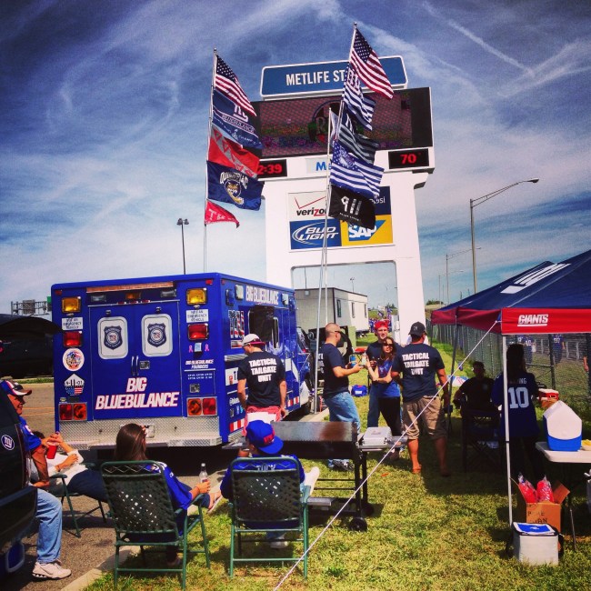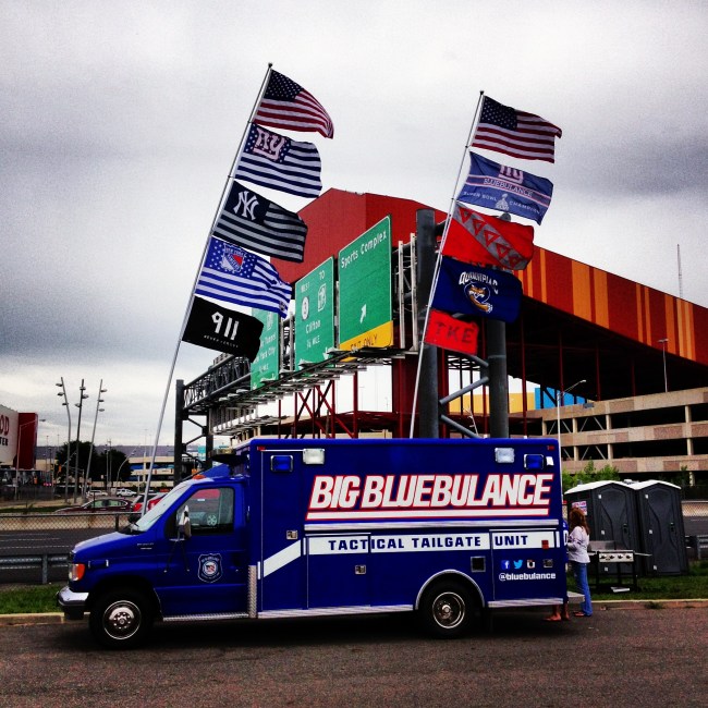 If you’ve been to the MetLife’s Stadium’s hallowed asphalt parking lot to tailgate for a Giants game, you’re probably familiar with with the BIG BLUEBULANCE. It’s a fixture at every home game for the past couple years.