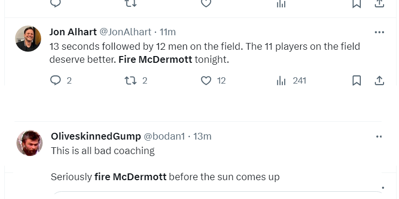 With the Broncos down one point at midfield with 52 seconds left on the clock, McDermott called an all-out blitz, which led to a pass interference near the 20-yard line.
