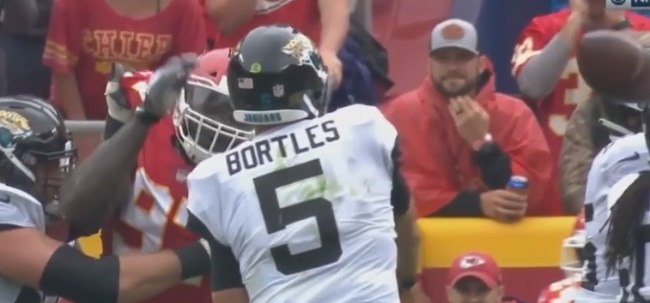 Blake Bortles is back to being an absolutely terrible QB. During today’s Jags-Chiefs game, Bortles embarrassed himself when he threw two absolutely terrible interceptions in the first half.