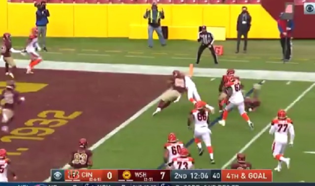 During the Bengals-Washington game, QB Joe Burrow tried to scramble for a touchdown but was met by Chase Young who absolutely crushed the young Bengals QB and forced a fumble.