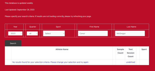 As of a week ago, McGregor was nowhere to be found in the testing pool. Could he have entered since? Sure.