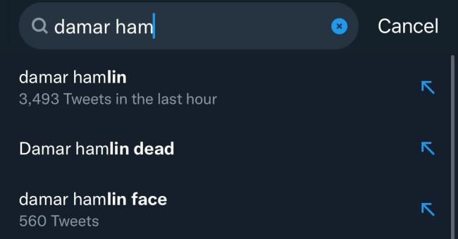 If you head over to Elon Musk’s Twitter and begin to type “Damar Hamlin” into the search bar, the top two suggestions are “Damar Hamlin dead” and “Damar Hamlin face.” If you click on either suggestion, you’ll be brought to a string of tweets that suggest the 24-year-old Buffalo Bills safety actually died and the one that showed up at the game is a “clone.”