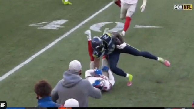 In the third quarter of the Seahawks-Giants game, Metcalf absolutely destroyed Bradberry with a vicious stiff-arm/