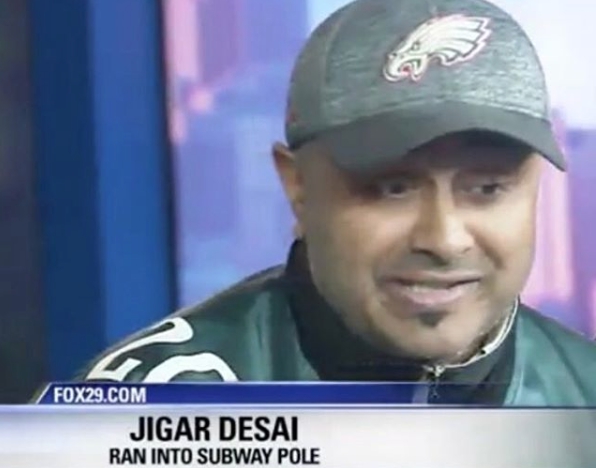 By now, every man, woman, and child in America has seen Eagles fan Jigar Desai get truck-sticked by a subway pole before his team’s decisive 38-7 win in the NFC Championship Sunday. The video has gone so viral and has embedded itself so deeply in the Eagles ascension to the Super Bowl, it has become an emblem to Philly fans. A source of pride. A true “that’s my guy!” moment.