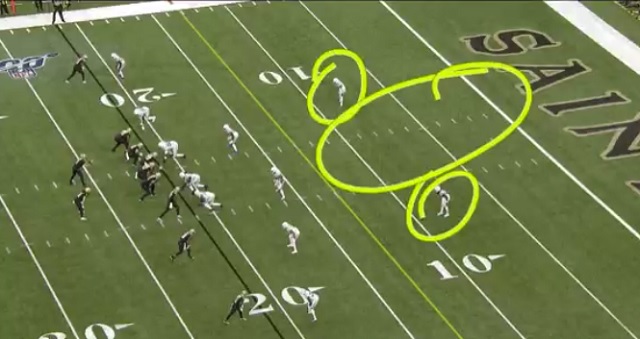 During Monday Night’s Saints-Colts game, Booger tried to show the weakness of the Colts cover 2 defense but instead he unintentionally drew what looked like a penis on the screen.