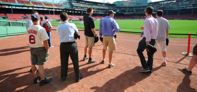 The Center Field Batting Practice Experience will allow groups of 20 to not only watch pre-game batting practice but be part of the action up close and personal. Unlike any other hospitality package in baseball, the Center Field Batting Practice Experience gives you the chance to participate by having your group on the field while the Red Sox take swings at the famous Green Monster. We have designated an exclusive section just inside the center-field warning track for your group to catch Major League fly balls and walk away with the experience of a lifetime. We even provide commemorative baseball gloves for each guest to keep!