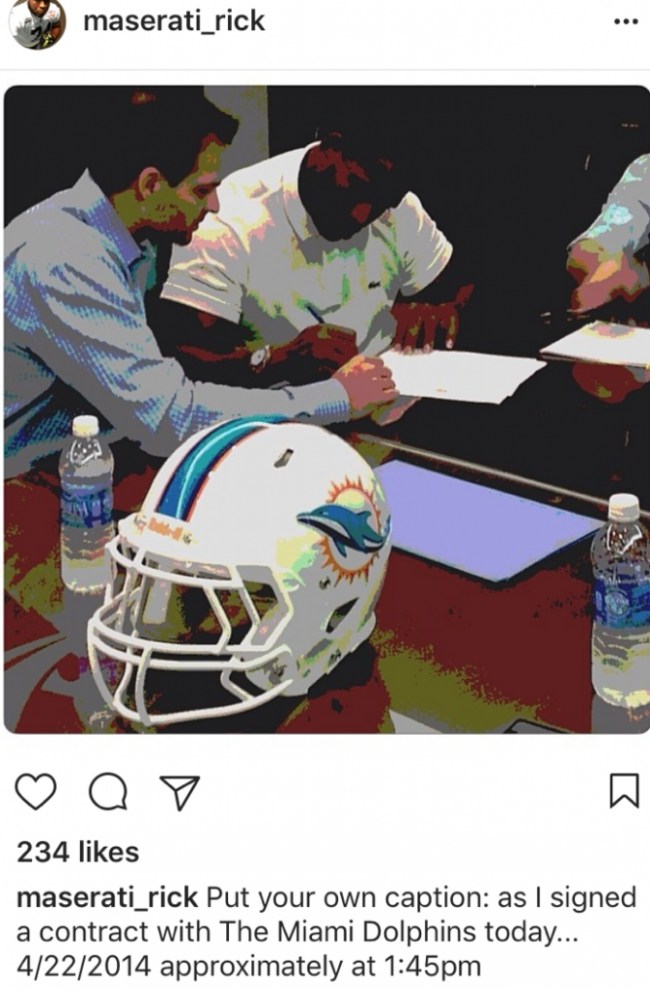 Robert Littal of Black Sports Online then texted someone from the Miami Dolphins asking if Maserati Ric was actually on the team. “Who the Fuck is Maserati Rick??” the player replied.