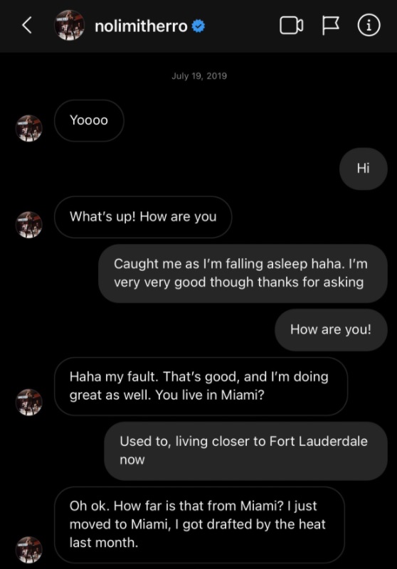 With Herro’s newfound fame more people are trying to gain a bit of clout by exploiting their past interactions with Tyler before he got famous. Earlier this week an Instagram model took to Twitter to show off an exchange she had with Herro last summer via Instagram DMs. The model had ignored Herro for months but then decided to respond to his DMs once he scored 37 points in a playoff game and became NBA famous during the Heat’s title run.