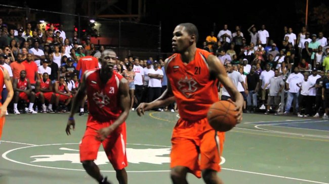 If you’ve got a couple minutes, you owe it to yourself to watch the KD’s full Rucker highlights. I’m honestly surprised KD didn’t burst into flames.