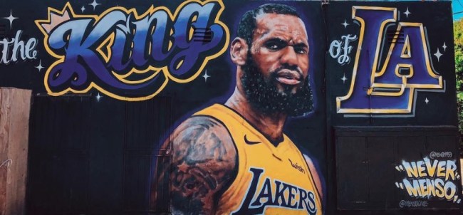 It doesn’t seem like everyone is happy about LeBron James arrival in Los Angeles. Just a few days ago, Instagram user Never1959 painted this pretty dope mural to welcome LeBron to the city of angels.