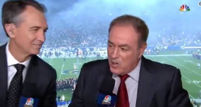 Before tonight’s Rams-Eagles game, NBC decided to have fun with the audience and had Collinsworth slide in from the left side of the screen instead of the right side.
