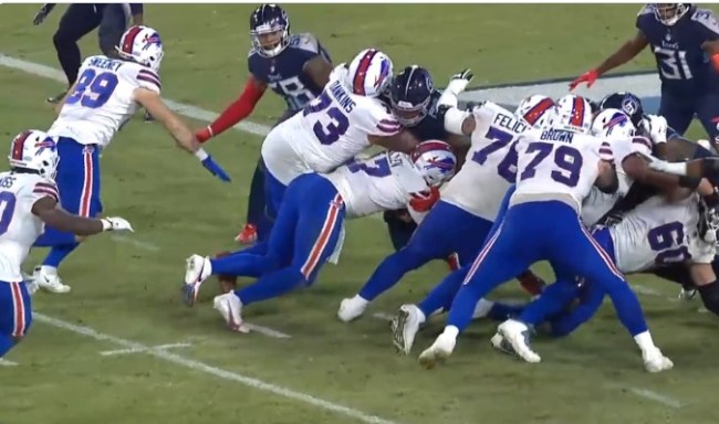 Down three points with twenty-two seconds left in the game, the Bills decided to run a QB sneak on 4th-and-1 on the three-yard line instead of kicking a field goal to tie the game but unfortunately QB Josh Allen wasn’t able to convert the first down.