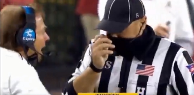 Nick Saban pulls off mask to yell at ref. Wouldn't be noteworthy except, well…
