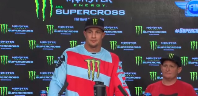 Today, Gronk was at Gillette Stadium today for a Supercross event in Foxboro, and when asked if he’s planning to join his team next week during the optional workouts ,he answered, “I’ve been training for this dirt biking.”