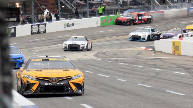 Rather than slow down for the final turn, Chastain moved his car up against the wall and stood on the gas, using the wall as a bumper. Somehow, miraculously, the insane move worked and he passed five cars to go from two points out of the championship race to four points in.