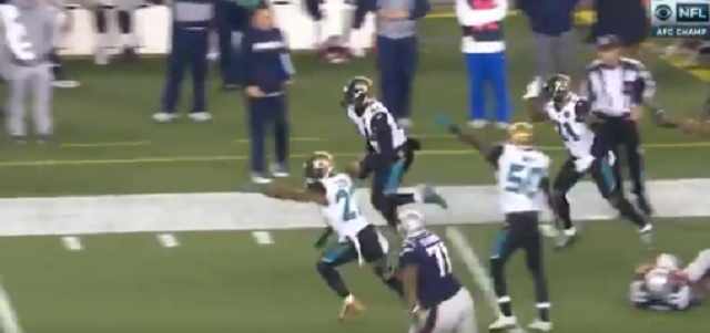 There's a really good chance this blown call ruling Myles Jack down when he would have scored a game-clinching touchdown will be the most important play of the game and it will be hardly even mentioned. He was never touched after he gained possession. JAXvsNE #AFCChampionship pic.twitter.com/1SNBhkGxom