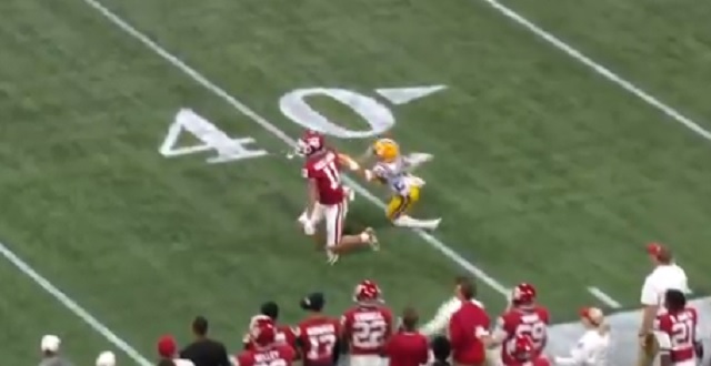 In the first quarter of today’s Peach Bow; between Oklahoma and LSU, an LSU defender clearly held onto an Oklahoma player down the field on third down but no pass interference penalty was called for whatever reason.