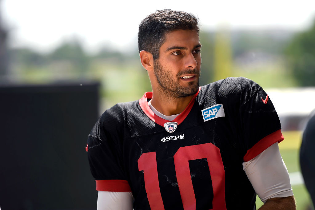 During Niners practice on Saturday, Jimmy G was seen on the field training by himself.