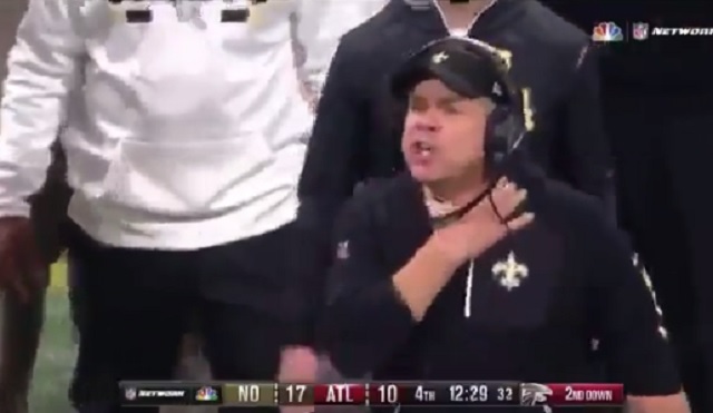 In the fourth quarter, of last night’s Saints-Falcons Thursday Night Football game, Saints head coach Sean Payton appears to taunt Falcons running back Devonta Freeman during a heated back and forth exchange between the two.