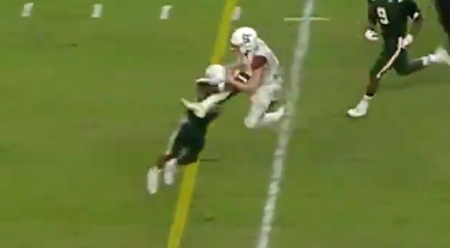 Syracuse QB Eric Dungey did his best Antonio Brown impression and kicked a Miami defender mid-air while trying to attempt a hurdle. Dungey’s kick didn’t land as cleanly as Brown’s did but it was impressive none-the-less.